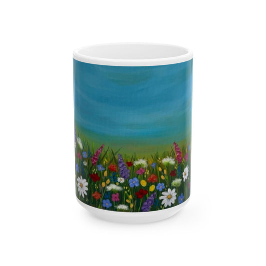 Wildflower Symphony Ceramic Mug - Colorful Floral Design for Coffee or Tea Lovers