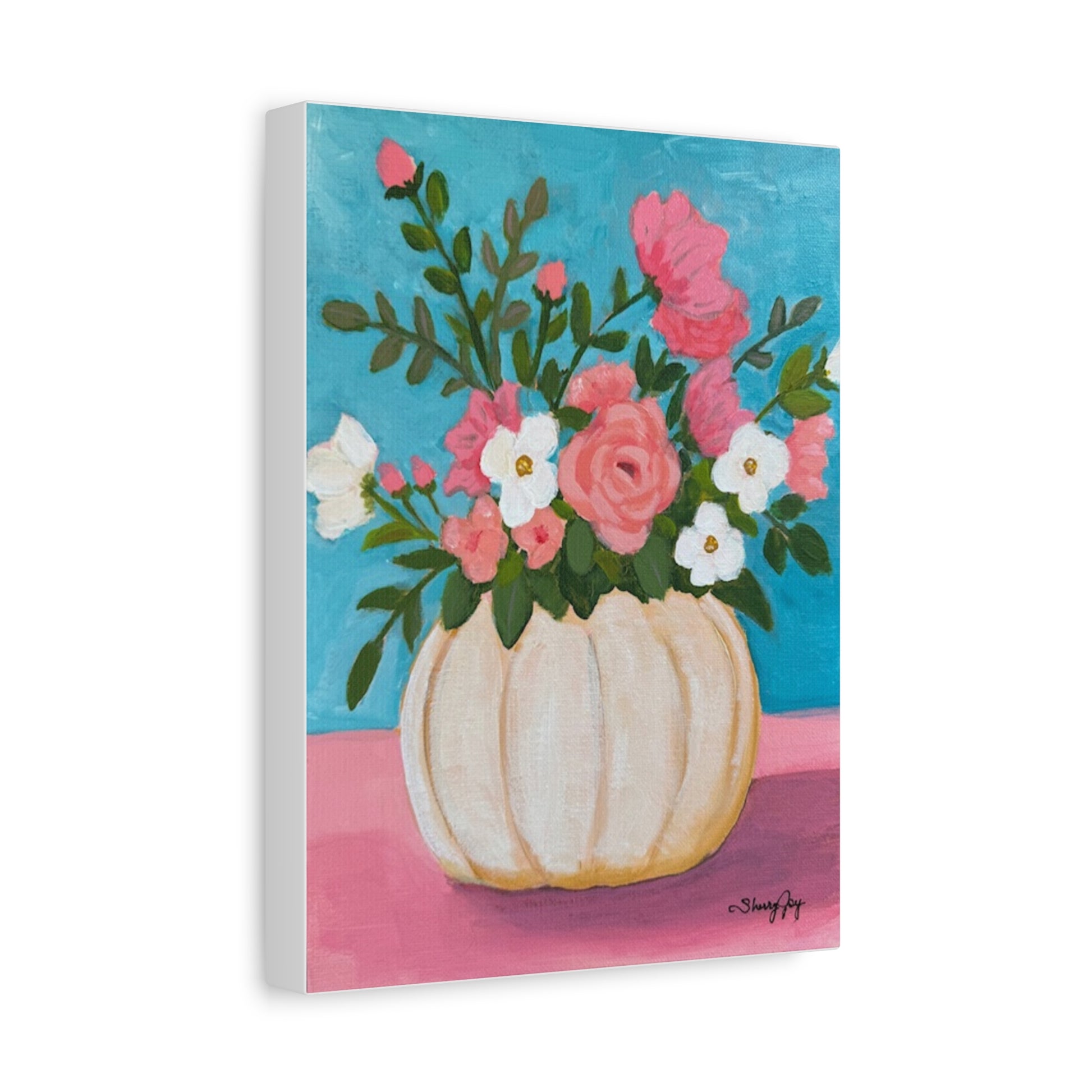 "Autumn Blessings in Bloom" Canvas Art Print, Autumn Decor, Pumpkin Flowers Wall Art, Home Decor, Gift for Her, Seasonal Artwork
