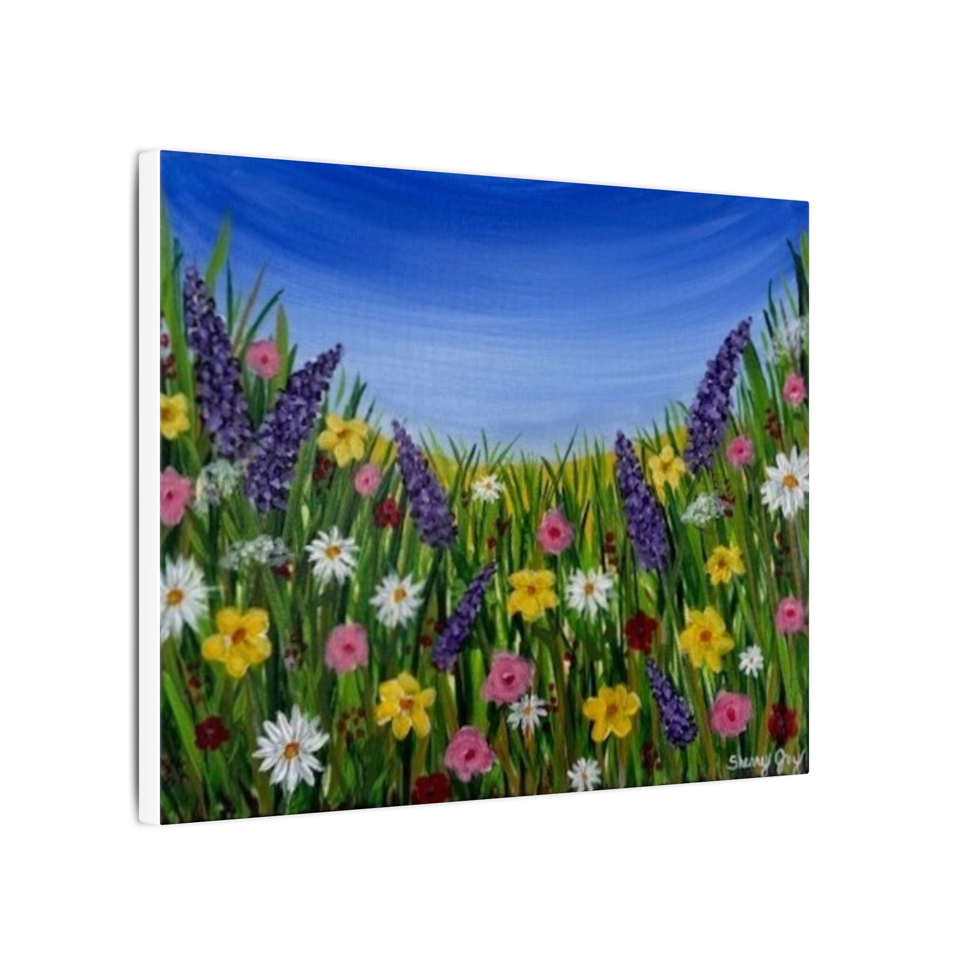 Add a touch of nature to your space with this vibrant field of flowers acrylic painting on a 11" x 14" canvas print. Original artwork by Sherry Joy Collier. Perfect for nature lovers and those looking to bring a pop of color to their wall decor. Ideal for home decor, office spaces, and gifting for birthdays, Mother's Day, or housewarmings.