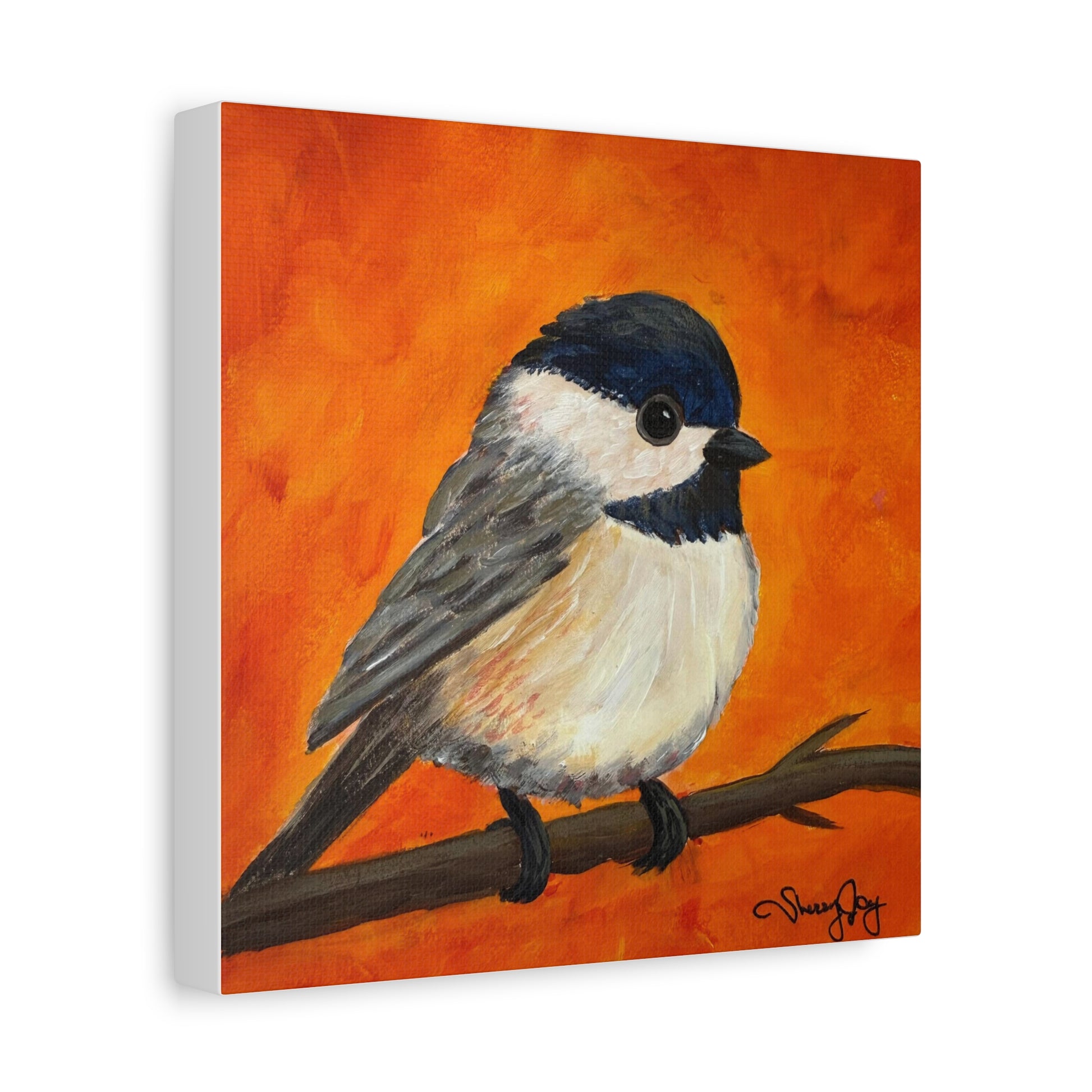Bring hope and comfort into your home with Provision in Every Season, a 10" x 10" canvas print of an original Sherry Joy Art acrylic painting. Featuring a charming Carolina Chickadee perched against a backdrop of autumn’s vibrant colors, this piece is inspired by the beloved Bible verse Matthew 6:26: