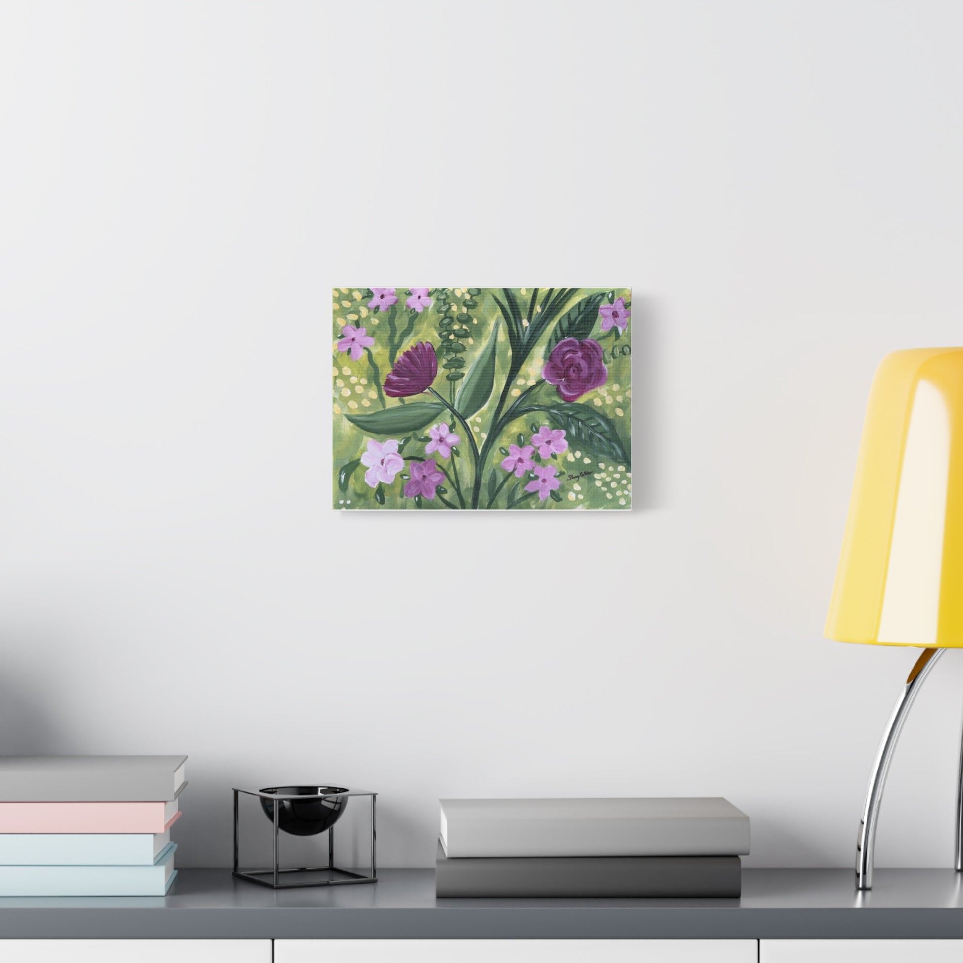 Let your space bloom with beauty and warmth. This floral acrylic painting combines delicate shades of purple blossoms with a backdrop of golden light and lush greenery, evoking both joy and serenity. The impressionistic brushstrokes create a sense of movement, as if the flowers are quietly whispering in the breeze.